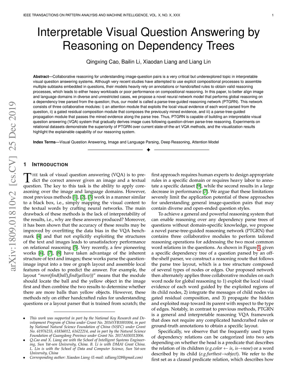 Interpretable Visual Question Answering by Reasoning on Dependency Trees