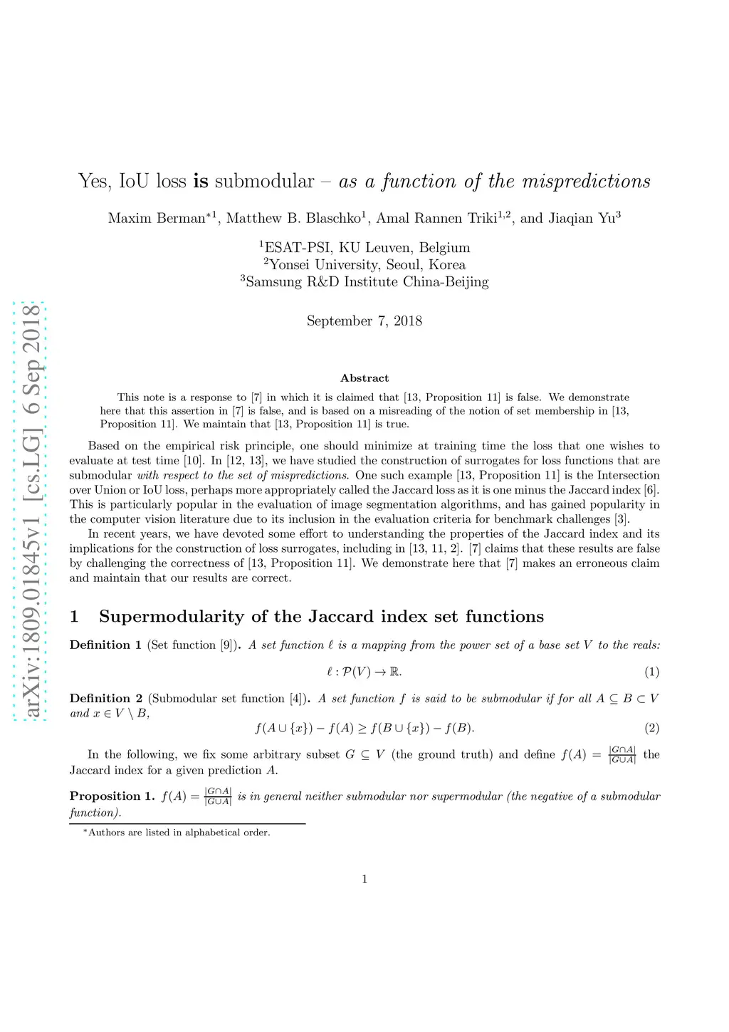 Yes, IoU loss is submodular - as a function of the mispredictions