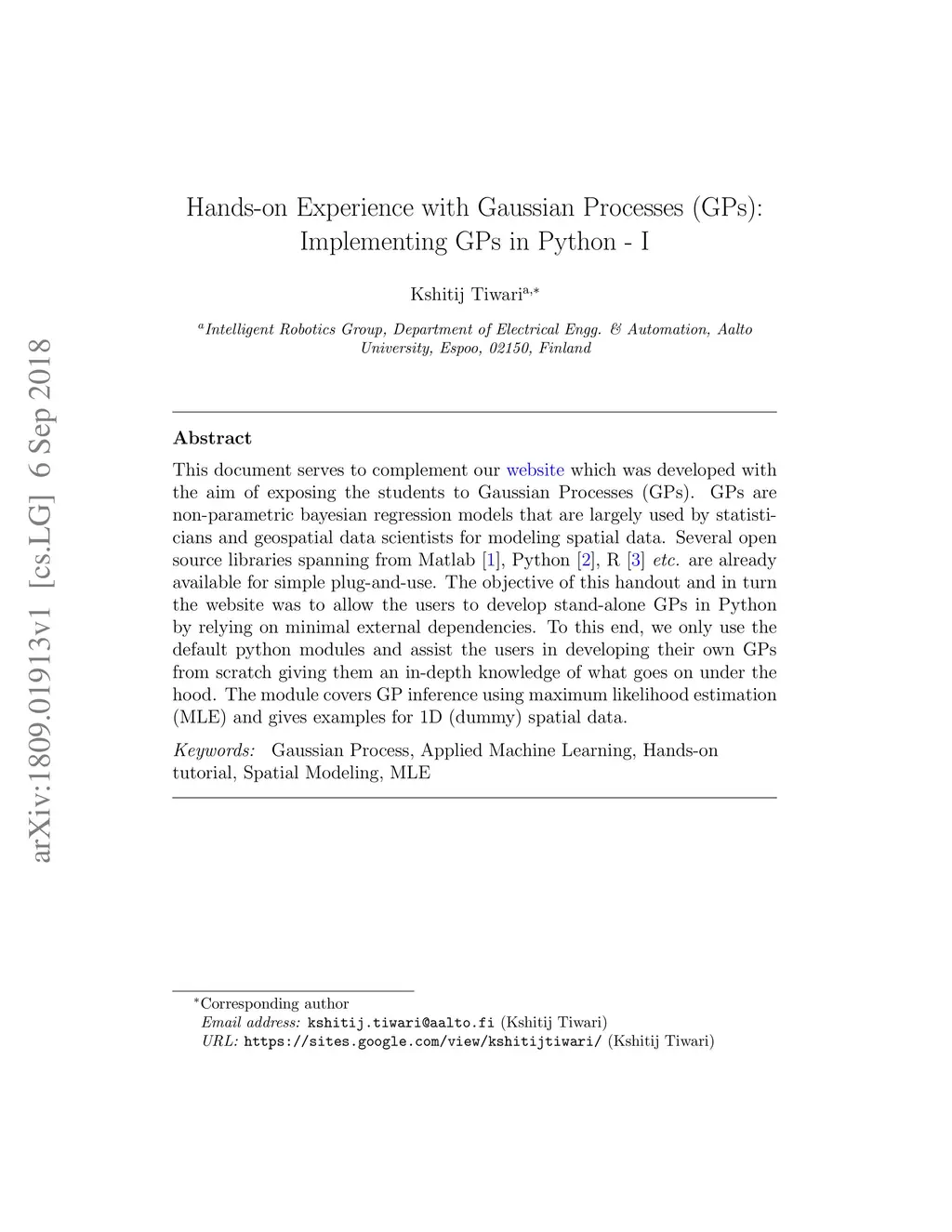 This document serves to complement our website which was developed with the aim of exposing the students to Gaussian Processes (GPs). GPs are non-parametric Bayesian regression models that are largely used by statisticians and geospatial data scientists for modeling spatial data. Several open source libraries spanning from Matlab [1], Python [2], R [3] etc., are already available for simple plug-and-use. The objective of this handout and in turn the website was to allow the users to develop stand-alone GPs in Python by relying on minimal external dependencies. To this end, we only use the default python modules and assist the users in developing their own GPs from scratch giving them an in-depth knowledge of what goes on under the hood. The module covers GP inference using maximum likelihood estimation (MLE) and gives examples of 1D (dummy) spatial data.