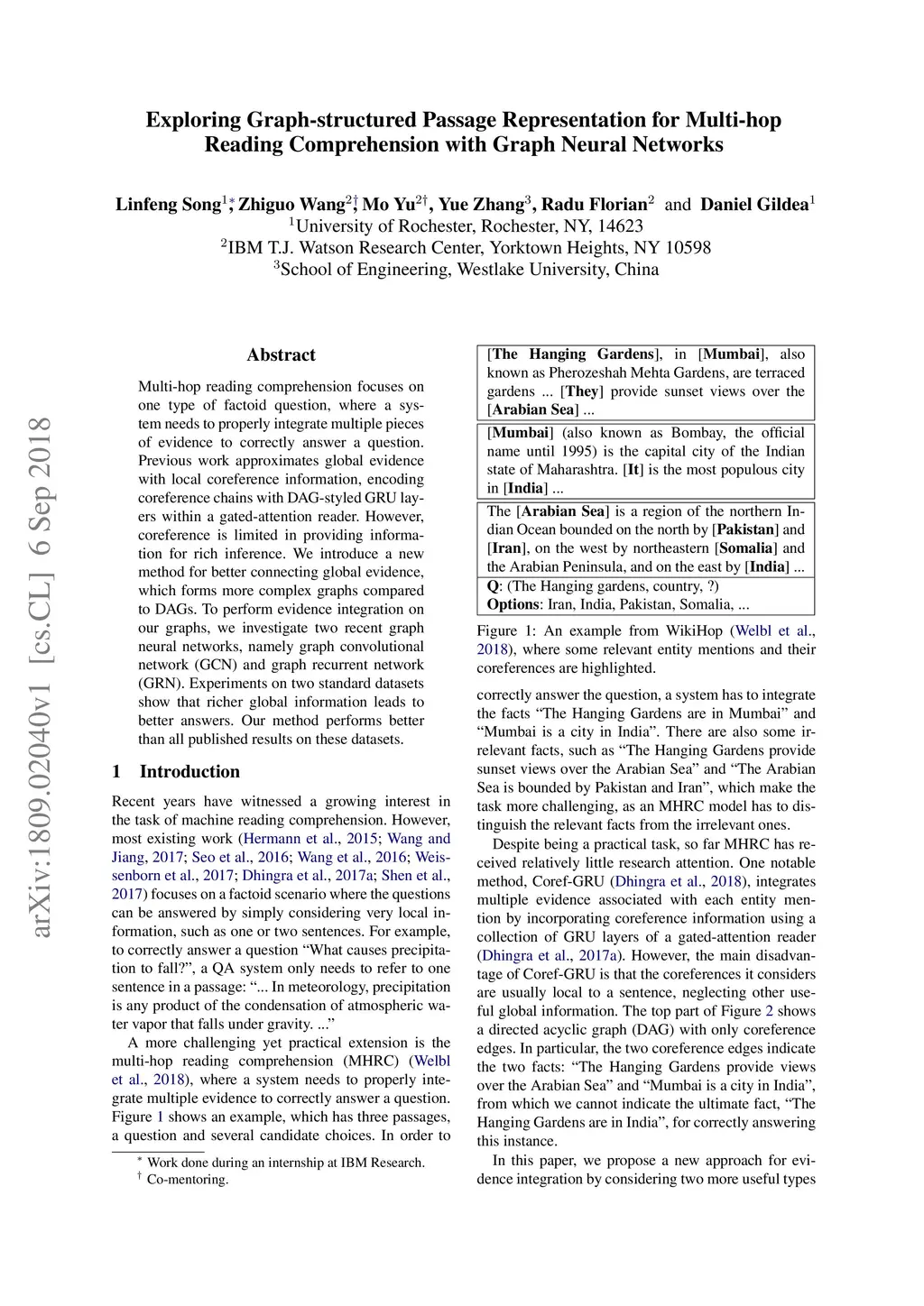 Exploring Graph-structured Passage Representation for Multi-hop Reading