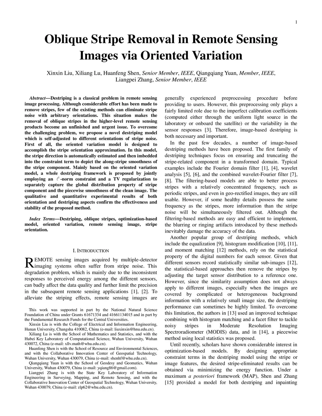 Oblique Stripe Removal in Remote Sensing Images via Oriented Variation