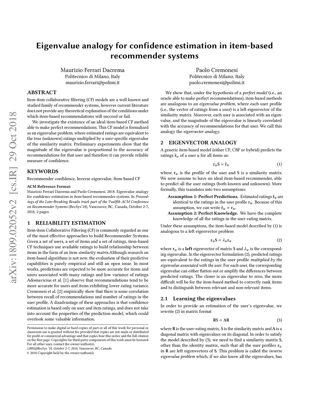 Eigenvalue analogy for confidence estimation in item-based recommender