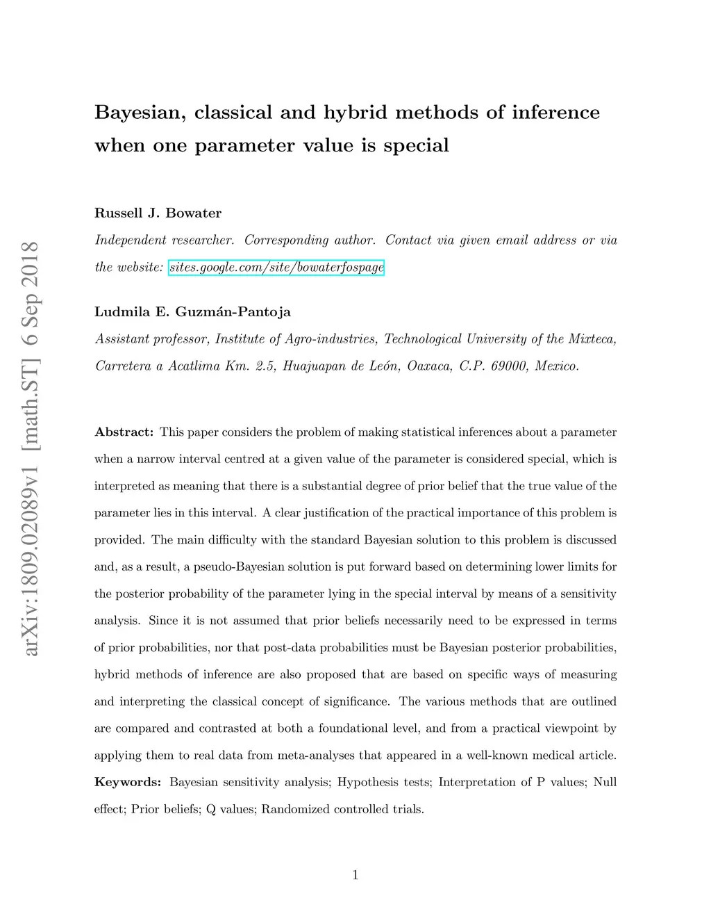 This paper considers the problem of making statistical inferences about a parameter when a narrow interval centred at a given value of the parameter is considered special, which is interpreted as meaning that there is a substantial degree of prior belief that the true value of the parameter lies in this interval. A clear justification of the practical importance of this problem is provided. The main difficulty with the standard Bayesian solution to this problem is discussed and, as a result, a pseudo-Bayesian solution is put forward based on determining lower limits for the posterior probability of the parameter lying in the special interval by means of a sensitivity analysis. Since it is not assumed that prior beliefs necessarily need to be expressed in terms of prior probabilities, nor that post-data probabilities must be Bayesian posterior probabilities, hybrid methods of inference are also proposed that are based on specific ways of measuring and interpreting the classical concept of significance. The various methods that are outlined are compared and contrasted at both a foundational level, and from a practical viewpoint by applying them to real data from meta-analyses that appeared in a well-known medical article.