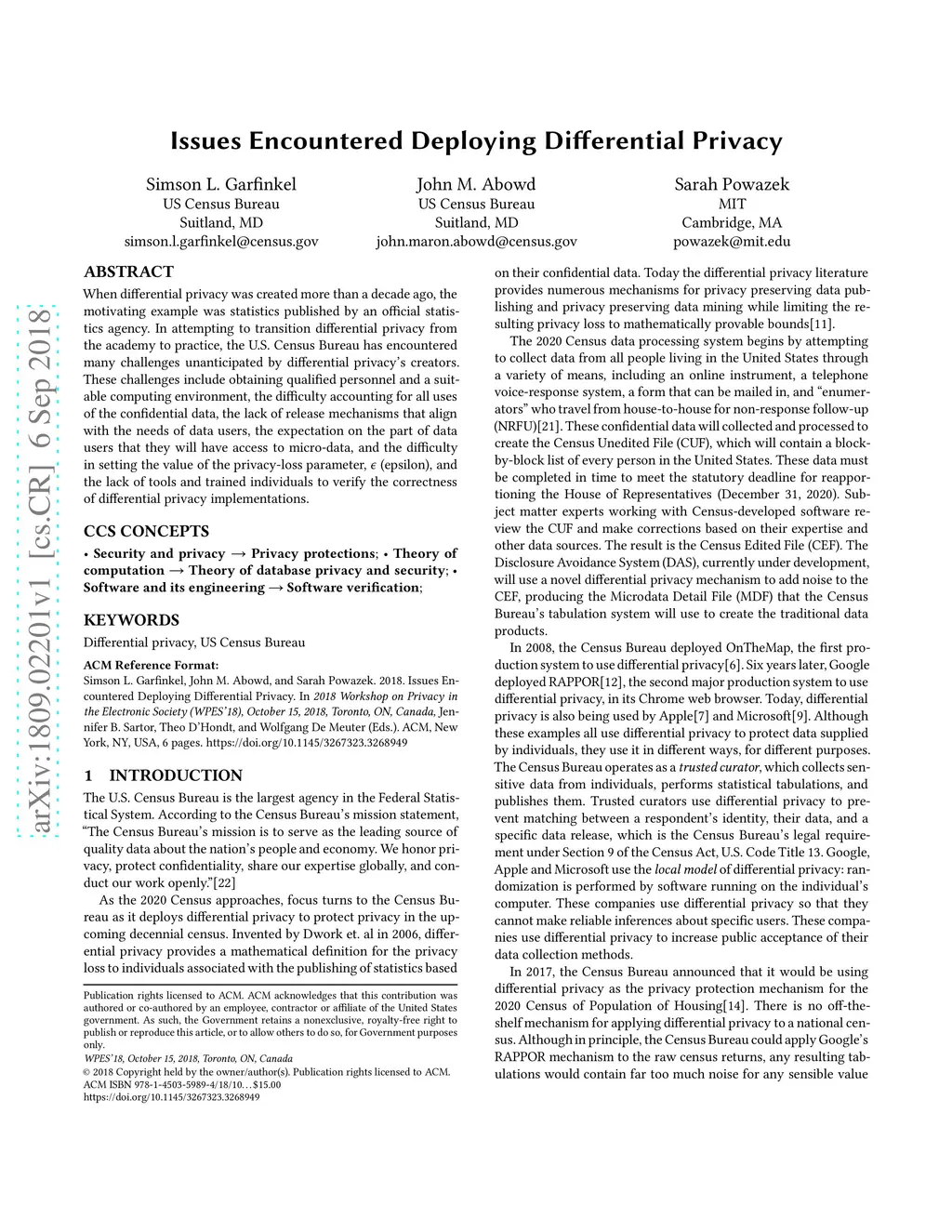 When differential privacy was created more than a decade ago, the motivating example was statistics published by an official statistics agency. In attempting to transition differential privacy from the academy to practice, the U.S. Census Bureau has encountered many challenges unanticipated by differential privacy's creators. These challenges include obtaining qualified personnel and a suitable computing environment, the difficulty accounting for all uses of the confidential data, the lack of release mechanisms that align with the needs of data users, the expectation on the part of data users that they will have access to micro-data, and the difficulty in setting the value of the privacy-loss parameter, (epsilon), and the lack of tools and trained individuals to verify the correctness of differential privacy implementations.