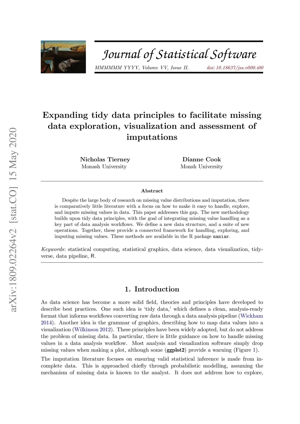Despite the large body of research on missing value distributions and imputation, there is comparatively little literature with a focus on how to make it easy to handle, explore, and impute missing values in data. This paper addresses this gap. The new methodology builds upon tidy data principles, with the goal of integrating missing value handling as a key part of data analysis workflows. We define a new data structure, and a suite of new operations. Together, these provide a connected framework for handling, exploring, and imputing missing values. These methods are available in the R package `naniar`.