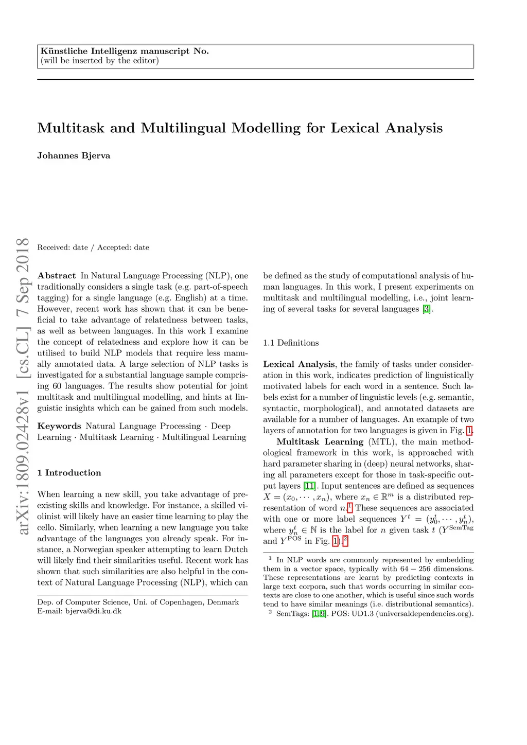 In Natural Language Processing (NLP), one traditionally considers a single task (e.g. part-of-speech tagging) for a single language (e.g. English) at a time. However, recent work has shown that it can be beneficial to take advantage of relatedness between tasks, as well as between languages. In this work I examine the concept of relatedness and explore how it can be utilised to build NLP models that require less manually annotated data. A large selection of NLP tasks is investigated for a substantial language sample comprising 60 languages. The results show potential for joint multitask and multilingual modelling, and hints at linguistic insights which can be gained from such models.