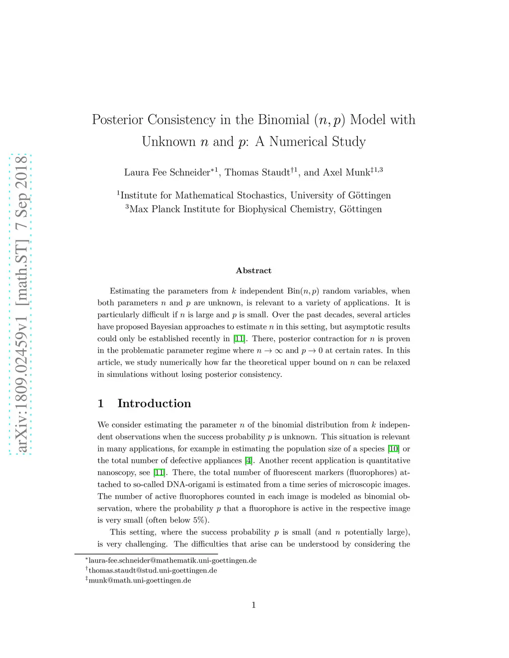 Estimating the parameters from independent Bin random variables, when both parameters and are unknown, is relevant to a variety of applications. It is particularly difficult if is large and is small. Over the past decades, several articles have proposed Bayesian approaches to estimate in this setting, but asymptotic results could only be established recently in \cite{Schneider}. There, posterior contraction for is proven in the problematic parameter regime where and at certain rates. In this article, we study numerically how far the theoretical upper bound on can be relaxed in simulations without losing posterior consistency.
