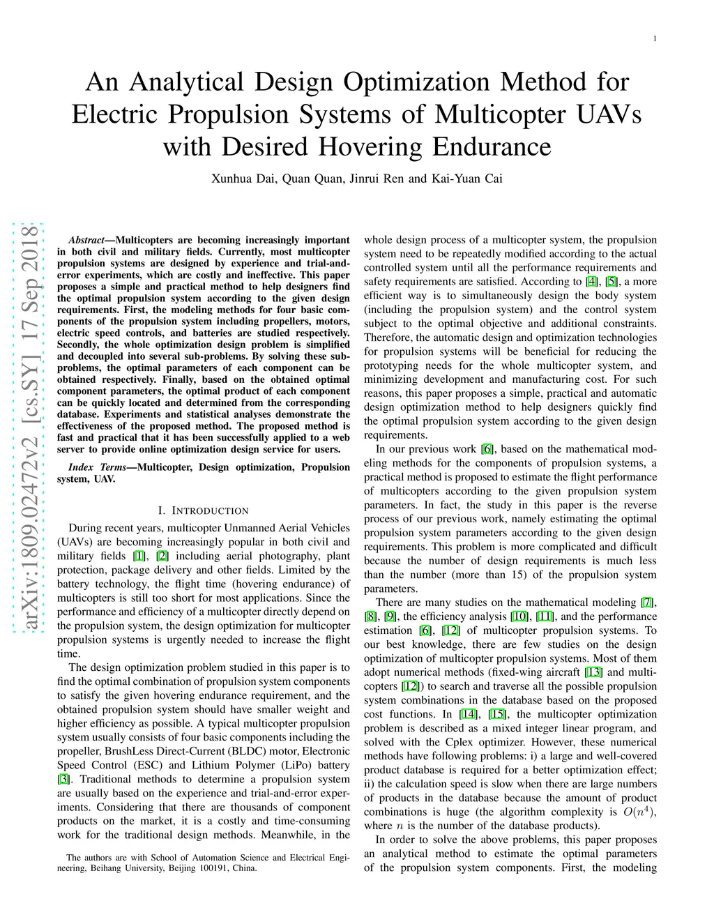 An Analytical Design Optimization Method for Electric Propulsion Systems