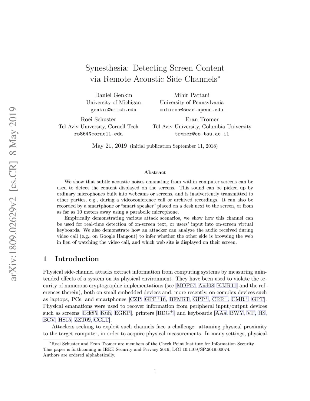 Synesthesia: Detecting Screen Content via Remote Acoustic Side Channels