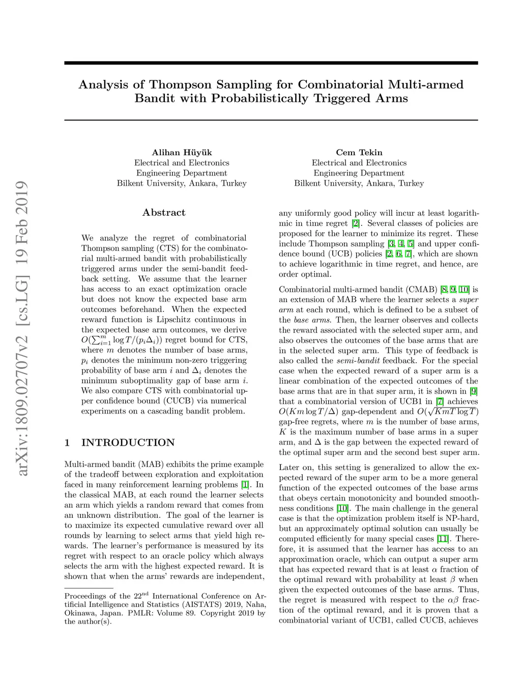 Probabilistically Triggered Arms
