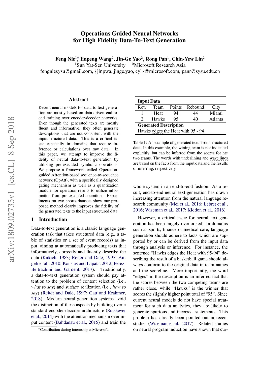 Operations Guided Neural Networks for High Fidelity Data-To-Text