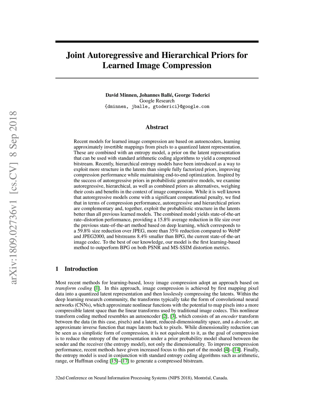 Joint Autoregressive and Hierarchical Priors for Learned Image