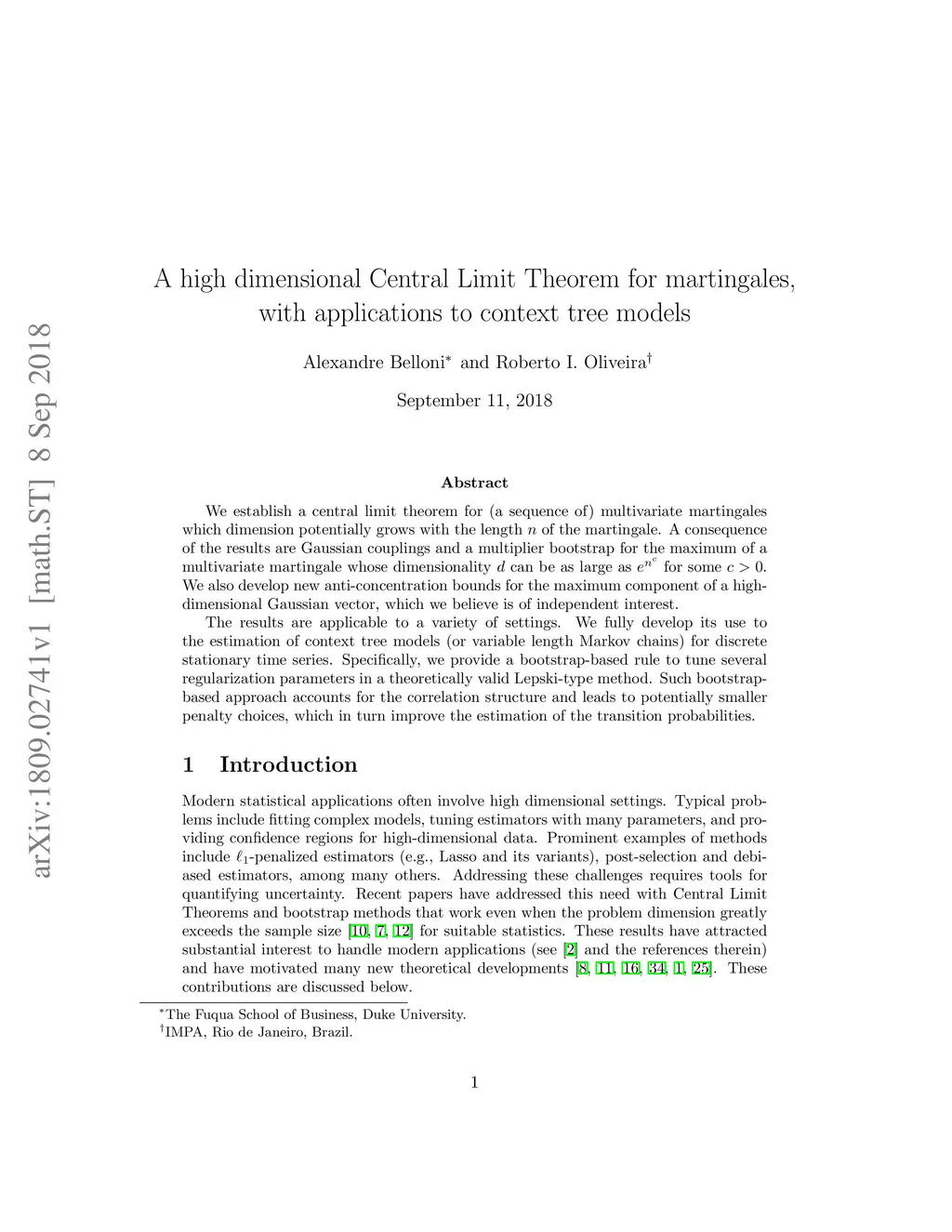 We establish a central limit theorem for (a sequence of) multivariate martingales which dimension potentially grows with the length of the martingale. A consequence of the results are Gaussian couplings and a multiplier bootstrap for the maximum of a multivariate martingale whose dimensionality can be as large as for some . We also develop new anti-concentration bounds for the maximum component of a high-dimensional Gaussian vector, which we believe is of independent interest. The results are applicable to a variety of settings. We fully develop its use to the estimation of context tree models (or variable length Markov chains) for discrete stationary time series. Specifically, we provide a bootstrap-based rule to tune several regularization parameters in a theoretically valid Lepski-type method. Such bootstrap-based approach accounts for the correlation structure and leads to potentially smaller penalty choices, which in turn improve the estimation of the transition probabilities.