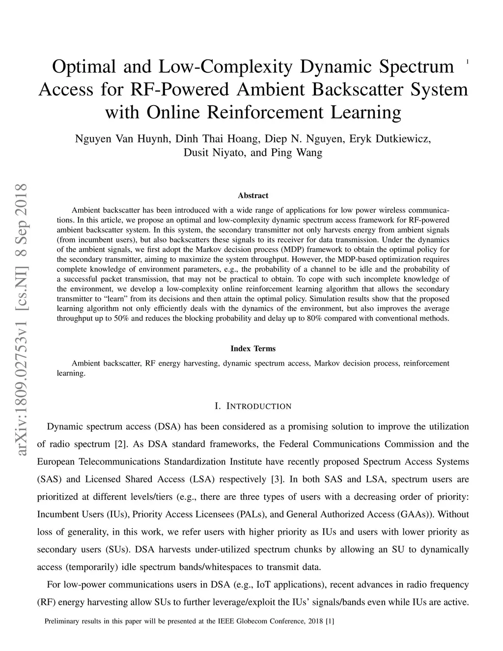 Ambient Backscatter System with Online Reinforcement Learning