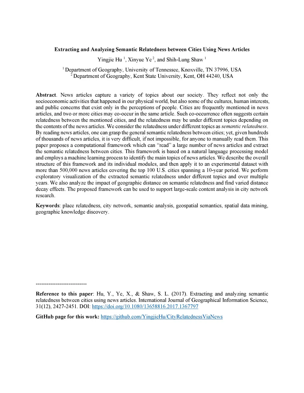 Extracting and Analyzing Semantic Relatedness between Cities Using News