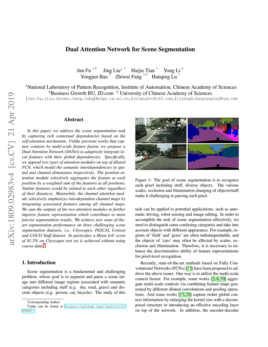 Dual Attention Network for Scene Segmentation