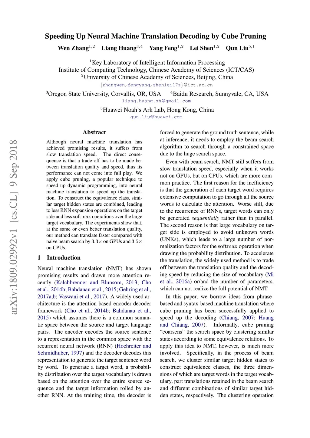 Speeding Up Neural Machine Translation Decoding by Cube Pruning