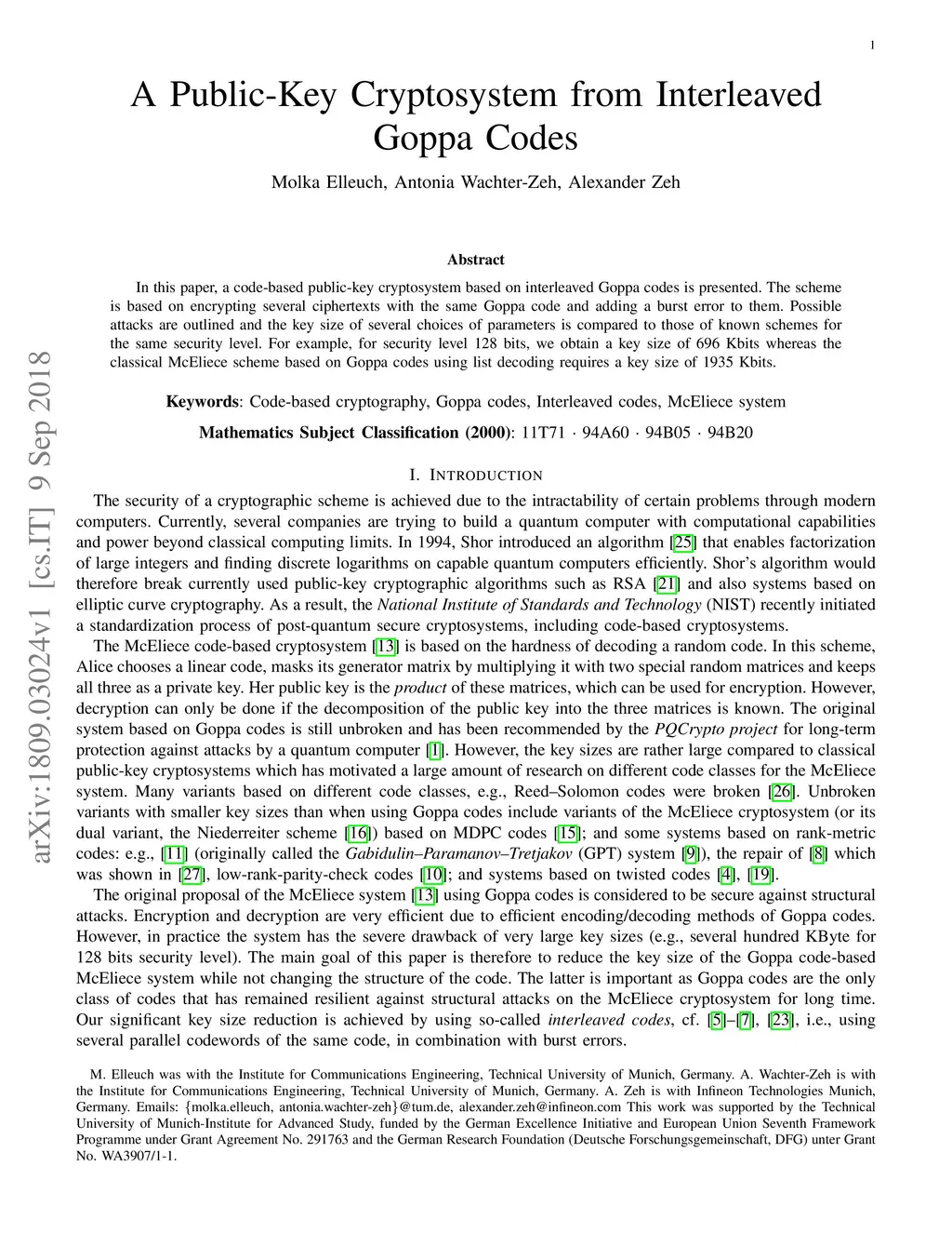 A Public-Key Cryptosystem from Interleaved Goppa Codes