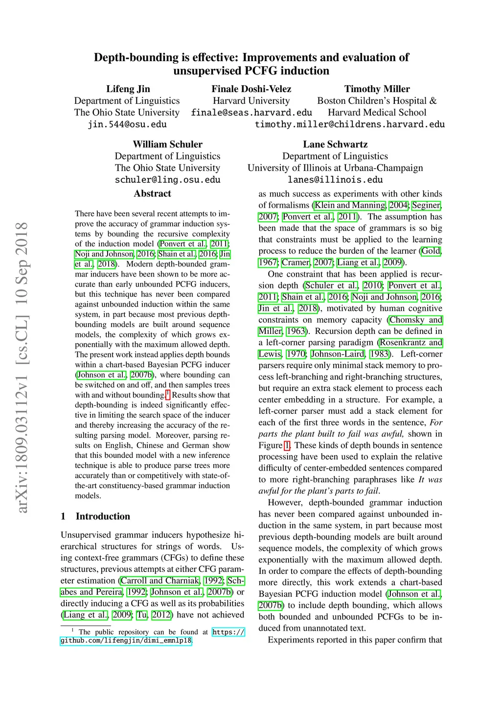 There have been several recent attempts to improve the accuracy of grammar induction systems by bounding the recursive complexity of the induction model (Ponvert et al., 2011; Noji and Johnson, 2016; Shain et al., 2016; Jin et al., 2018). Modern depth-bounded grammar inducers have been shown to be more accurate than early unbounded PCFG inducers, but this technique has never been compared against unbounded induction within the same system, in part because most previous depth-bounding models are built around sequence models, the complexity of which grows exponentially with the maximum allowed depth. The present work instead applies depth bounds within a chart-based Bayesian PCFG inducer (Johnson et al., 2007b), where bounding can be switched on and off, and then samples trees with and without bounding. Results show that depth-bounding is indeed significantly effective in limiting the search space of the inducer and thereby increasing the accuracy of the resulting parsing model. Moreover, parsing results on English, Chinese and German show that this bounded model with a new inference technique is able to produce parse trees more accurately than or competitively with state-of-the-art constituency-based grammar induction models.