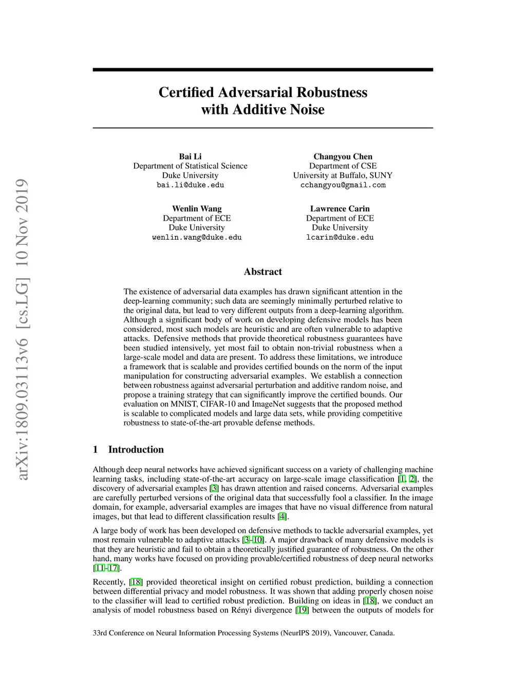 Certified Adversarial Robustness with Additive Noise