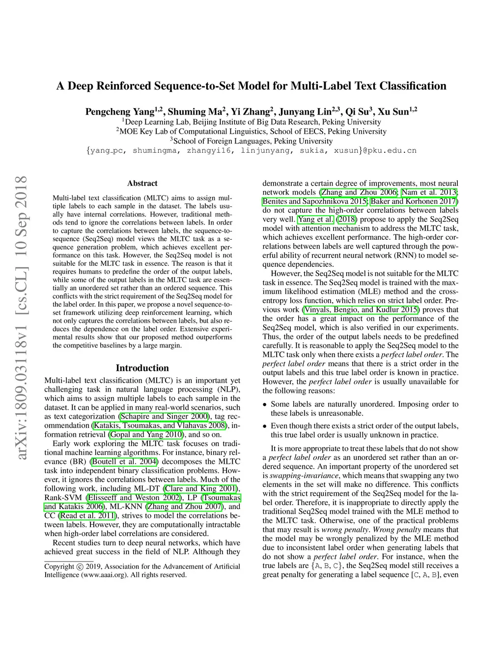 A Deep Reinforced Sequence-to-Set Model for Multi-Label Text