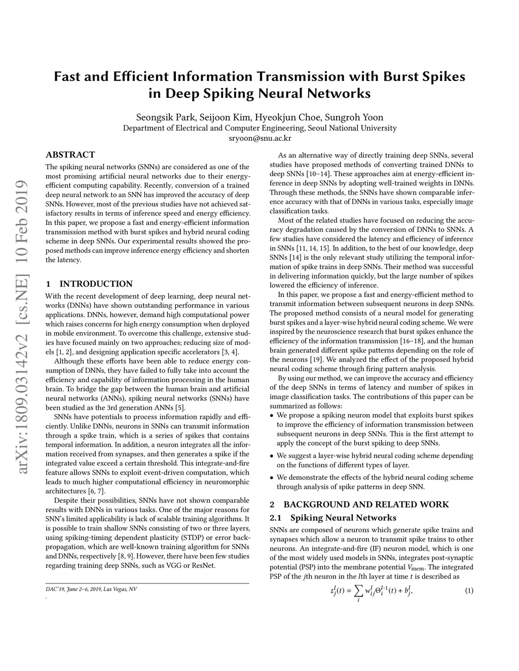 The spiking neural networks (SNNs) are considered as one of the most promising artificial neural networks due to their energy efficient computing capability. Recently, conversion of a trained deep neural network to an SNN has improved the accuracy of deep SNNs. However, most of the previous studies have not achieved satisfactory results in terms of inference speed and energy efficiency. In this paper, we propose a fast and energy-efficient information transmission method with burst spikes and hybrid neural coding scheme in deep SNNs. Our experimental results showed the proposed methods can improve inference energy efficiency and shorten the latency.