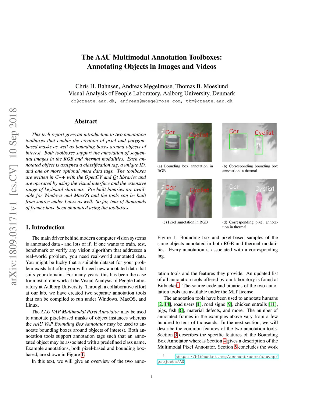 This tech report gives an introduction to two annotation toolboxes that enable the creation of pixel and polygon-based masks as well as bounding boxes around objects of interest. Both toolboxes support the annotation of sequential images in the RGB and thermal modalities. Each annotated object is assigned a classification tag, a unique ID, and one or more optional meta data tags. The toolboxes are written in C++ with the OpenCV and Qt libraries and are operated by using the visual interface and the extensive range of keyboard shortcuts. Pre-built binaries are available for Windows and MacOS and the tools can be built from source under Linux as well. So far, tens of thousands of frames have been annotated using the toolboxes.