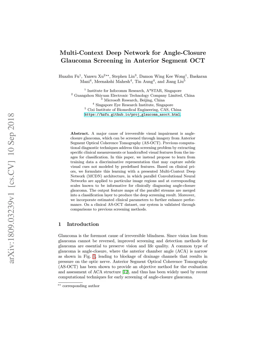 Multi-Context Deep Network for Angle-Closure Glaucoma Screening in