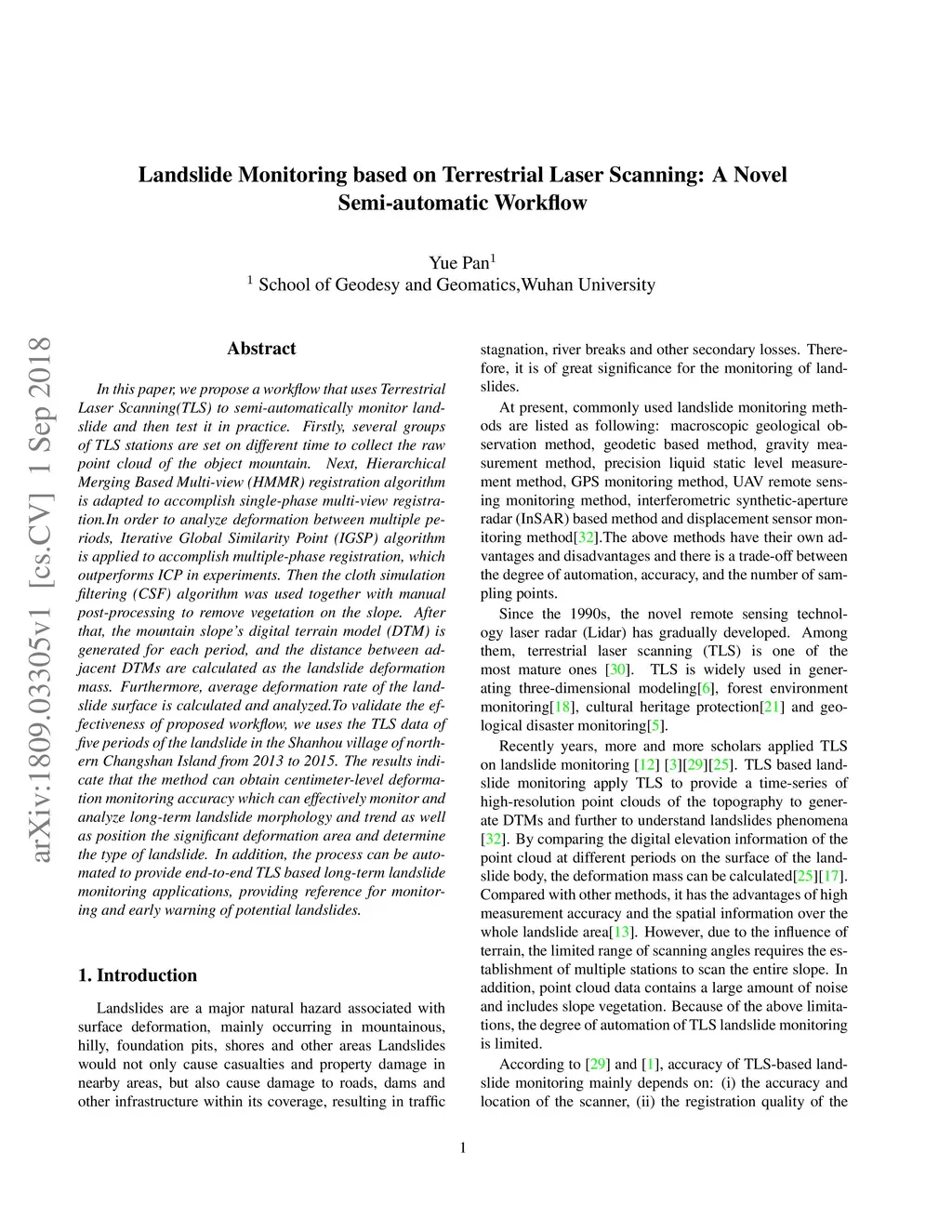 Landslide Monitoring based on Terrestrial Laser Scanning: A Novel