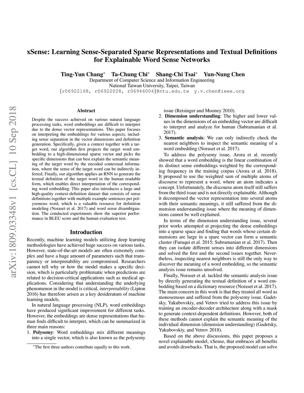 xSense: Learning Sense-Separated Sparse Representations and Textual