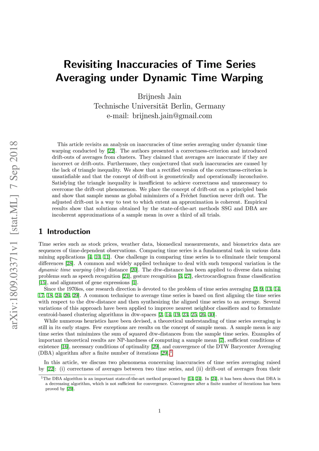 This article revisits an analysis on inaccuracies of time series averaging under dynamic time warping conducted by \cite{Niennattrakul2007}. The authors presented a correctness-criterion and introduced drift-outs of averages from clusters. They claimed that averages are inaccurate if they are incorrect or drift-outs. Furthermore, they conjectured that such inaccuracies are caused by the lack of triangle inequality. We show that a rectified version of the correctness-criterion is unsatisfiable and that the concept of drift-out is geometrically and operationally inconclusive. Satisfying the triangle inequality is insufficient to achieve correctness and unnecessary to overcome the drift-out phenomenon. We place the concept of drift-out on a principled basis and show that sample means as global minimizers of a Fr\échet function never drift out. The adjusted drift-out is a way to test to which extent an approximation is coherent. Empirical results show that solutions obtained by the state-of-the-art methods SSG and DBA are incoherent approximations of a sample mean in over a third of all trials.
