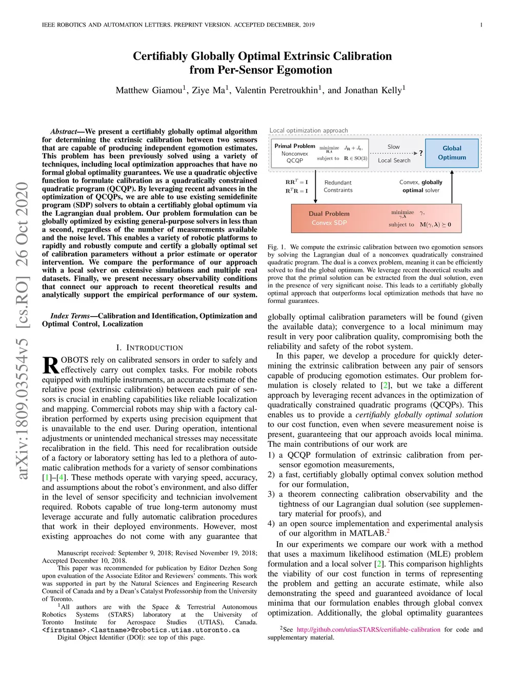 Certifiably Globally Optimal Extrinsic Calibration from Per-Sensor