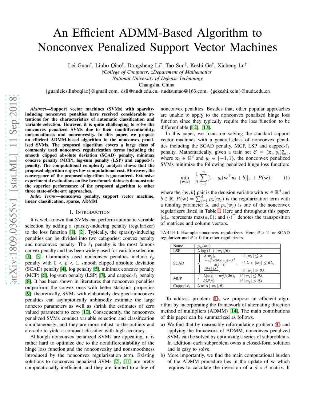 An Efficient ADMM-Based Algorithm to Nonconvex Penalized Support Vector