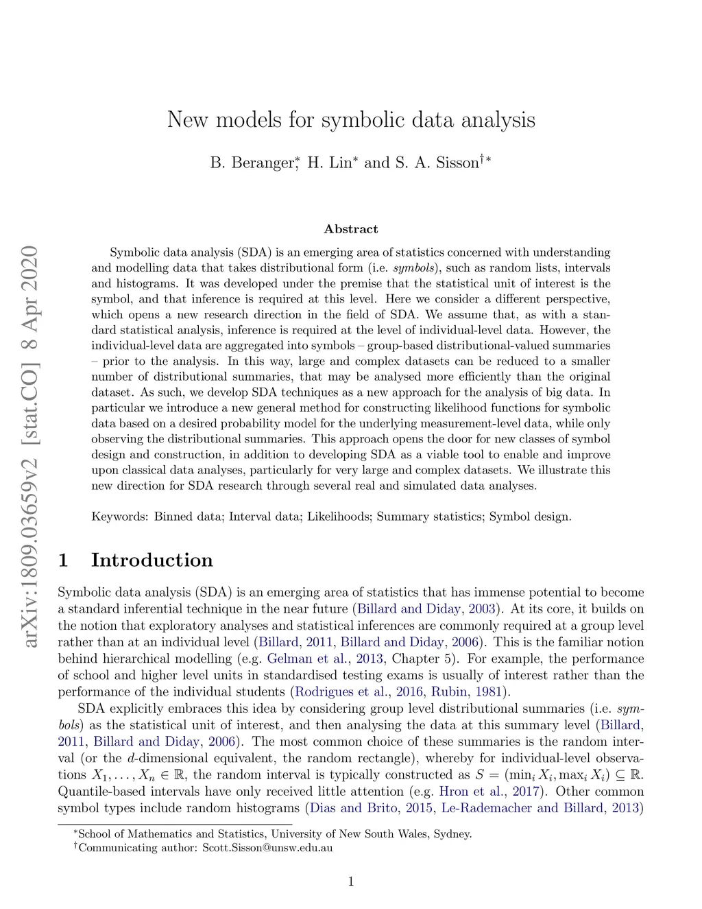 Symbolic data analysis (SDA) is an emerging area of statistics based on aggregating individual level data into group-based distributional summaries (symbols), and then developing statistical methods to analyse them. It is ideal for analysing large and complex datasets, and has immense potential to become a standard inferential technique in the near future. However, existing SDA techniques are either non-inferential, do not easily permit meaningful statistical models, are unable to distinguish between competing models, and are based on simplifying assumptions that are known to be false. Further, the procedure for constructing symbols from the underlying data is erroneously not considered relevant to the resulting statistical analysis. In this paper we introduce a new general method for constructing likelihood functions for symbolic data based on a desired probability model for the underlying classical data, while only observing the distributional summaries. This approach resolves many of the conceptual and practical issues with current SDA methods, opens the door for new classes of symbol design and construction, in addition to developing SDA as a viable tool to enable and improve upon classical data analyses, particularly for very large and complex datasets. This work creates a new direction for SDA research, which we illustrate through several real and simulated data analyses.