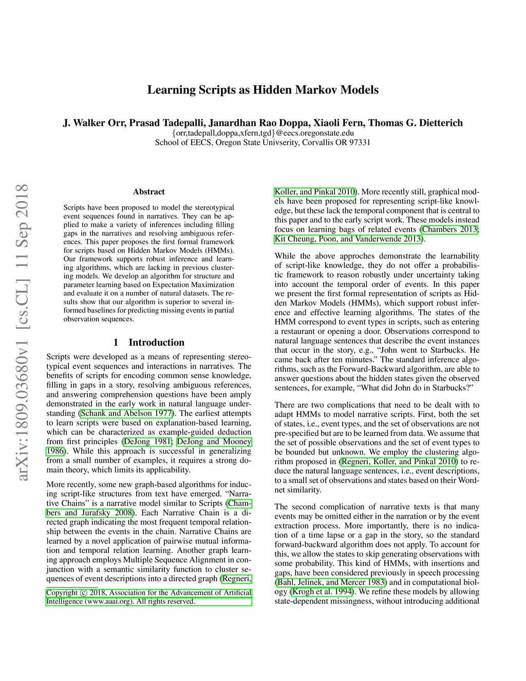 Learning Scripts as Hidden Markov Models