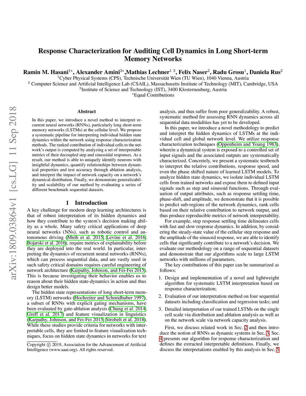 Response Characterization for Auditing Cell Dynamics in Long Short-term