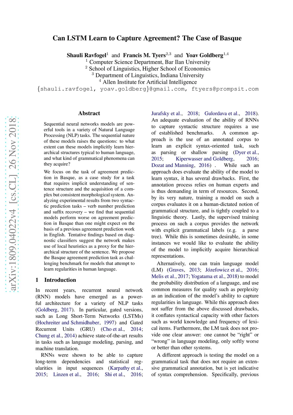 Can LSTM Learn to Capture Agreement? The Case of Basque