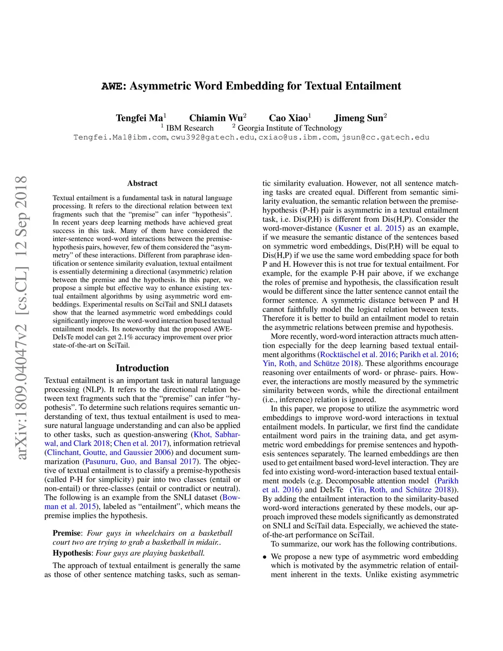 AWE: Asymmetric Word Embedding for Textual Entailment