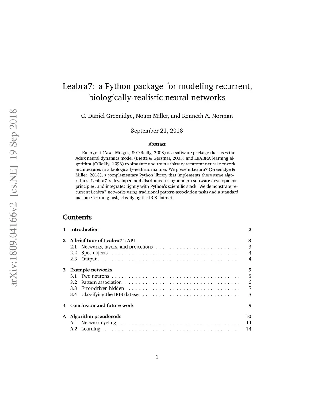 Emergent is a software package that uses the AdEx neural dynamics model and LEABRA learning algorithm to simulate and train arbitrary recurrent neural network architectures in a biologically-realistic manner. We present Leabra7, a complementary Python library that implements these same algorithms. Leabra7 is developed and distributed using modern software development principles, and integrates tightly with Python's scientific stack. We demonstrate recurrent Leabra7 networks using traditional pattern-association tasks and a standard machine learning task, classifying the IRIS dataset.