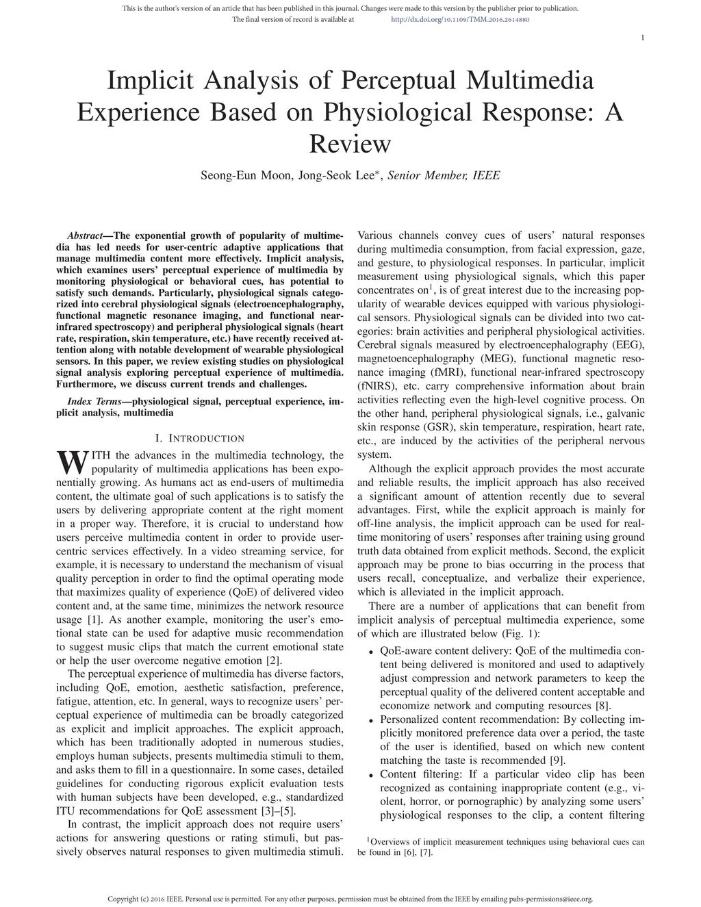 Implicit Analysis of Perceptual Multimedia Experience Based on