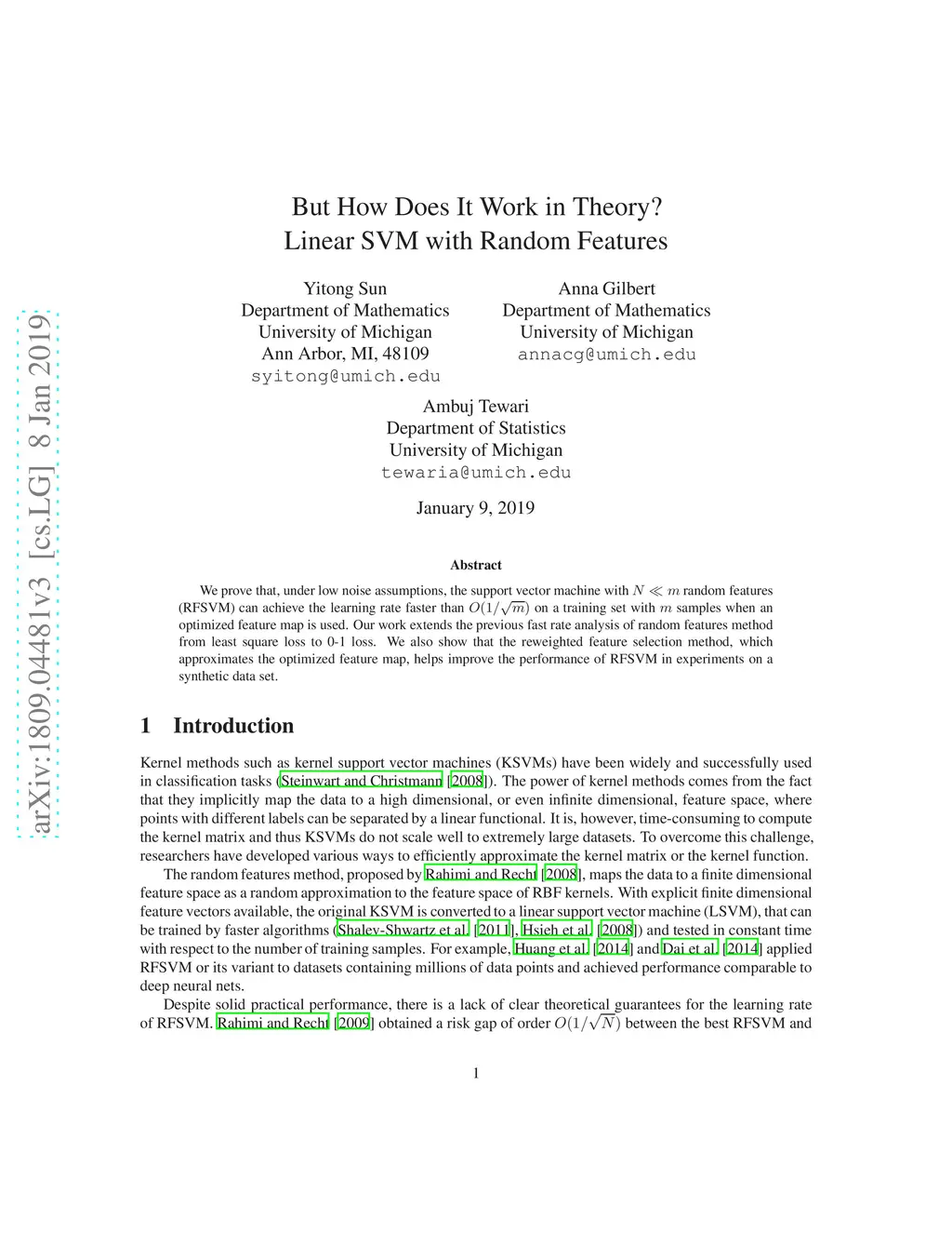 But How Does It Work in Theory? Linear SVM with Random Features