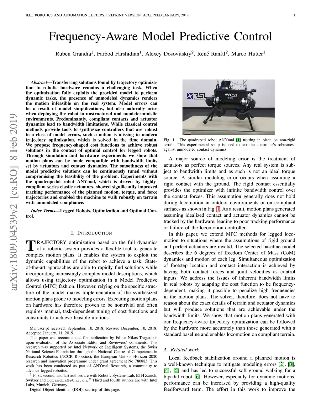 Transferring solutions found by trajectory optimization to robotic hardware remains a challenging task. When the optimization fully exploits the provided model to perform dynamic tasks, the presence of unmodeled dynamics renders the motion infeasible on the real system. Model errors can be a result of model simplifications, but also naturally arise when deploying the robot in unstructured and nondeterministic environments. Predominantly, compliant contacts and actuator dynamics lead to bandwidth limitations. While classical control methods provide tools to synthesize controllers that are robust to a class of model errors, such a notion is missing in modern trajectory optimization, which is solved in the time domain. We propose frequency-shaped cost functions to achieve robust solutions in the context of optimal control for legged robots. Through simulation and hardware experiments we show that motion plans can be made compatible with bandwidth limits set by actuators and contact dynamics. The smoothness of the model predictive solutions can be continuously tuned without compromising the feasibility of the problem. Experiments with the quadrupedal robot ANYmal, which is driven by highly-compliant series elastic actuators, showed significantly improved tracking performance of the planned motion, torque, and force trajectories and enabled the machine to walk robustly on terrain with unmodeled compliance.