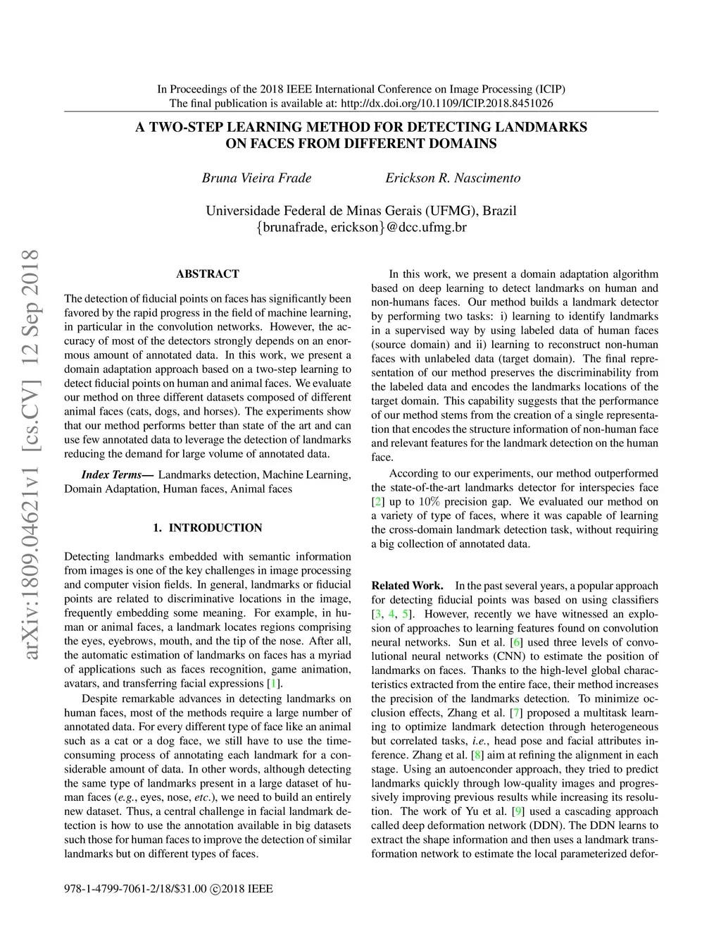 The detection of fiducial points on faces has significantly been favored by the rapid progress in the field of machine learning, in particular in the convolution networks. However, the accuracy of most of the detectors strongly depends on an enormous amount of annotated data. In this work, we present a domain adaptation approach based on a two-step learning to detect fiducial points on human and animal faces. We evaluate our method on three different datasets composed of different animal faces (cats, dogs, and horses). The experiments show that our method performs better than state of the art and can use few annotated data to leverage the detection of landmarks reducing the demand for large volume of annotated data.
