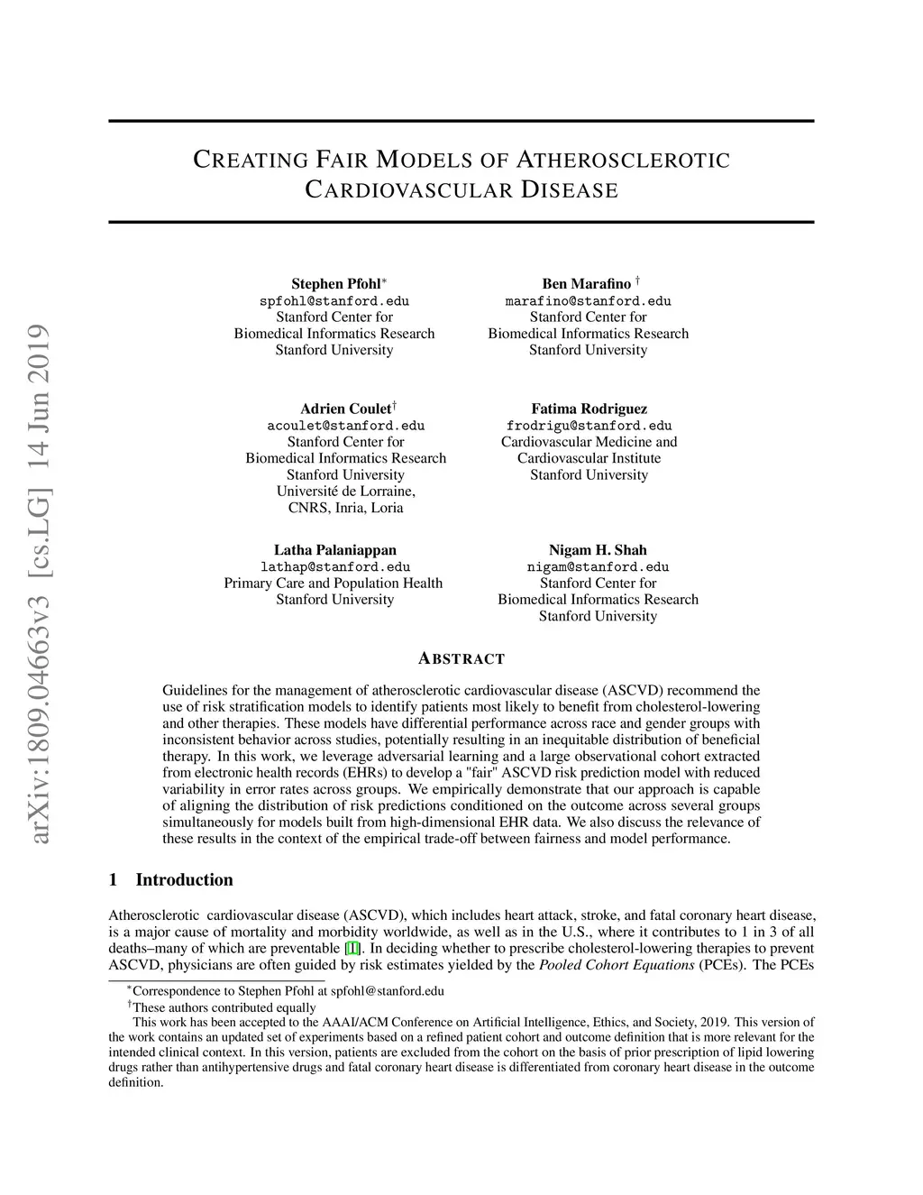 Creating Fair Models of Atherosclerotic Cardiovascular Disease Risk