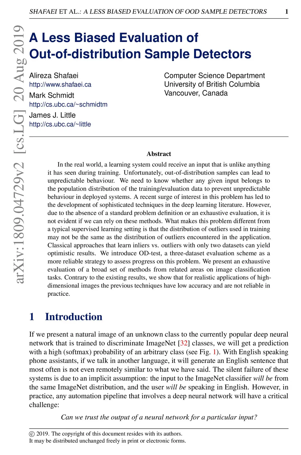 In the real world, a learning system could receive an input that is unlike anything it has seen during training. Unfortunately, out-of-distribution samples can lead to unpredictable behaviour. We need to know whether any given input belongs to the population distribution of the training/evaluation data to prevent unpredictable behaviour in deployed systems. A recent surge of interest in this problem has led to the development of sophisticated techniques in the deep learning literature. However, due to the absence of a standard problem definition or an exhaustive evaluation, it is not evident if we can rely on these methods. What makes this problem different from a typical supervised learning setting is that the distribution of outliers used in training may not be the same as the distribution of outliers encountered in the application. Classical approaches that learn inliers vs. outliers with only two datasets can yield optimistic results. We introduce OD-test, a three-dataset evaluation scheme as a more reliable strategy to assess progress on this problem. We present an exhaustive evaluation of a broad set of methods from related areas on image classification tasks. Contrary to the existing results, we show that for realistic applications of high-dimensional images the previous techniques have low accuracy and are not reliable in practice.