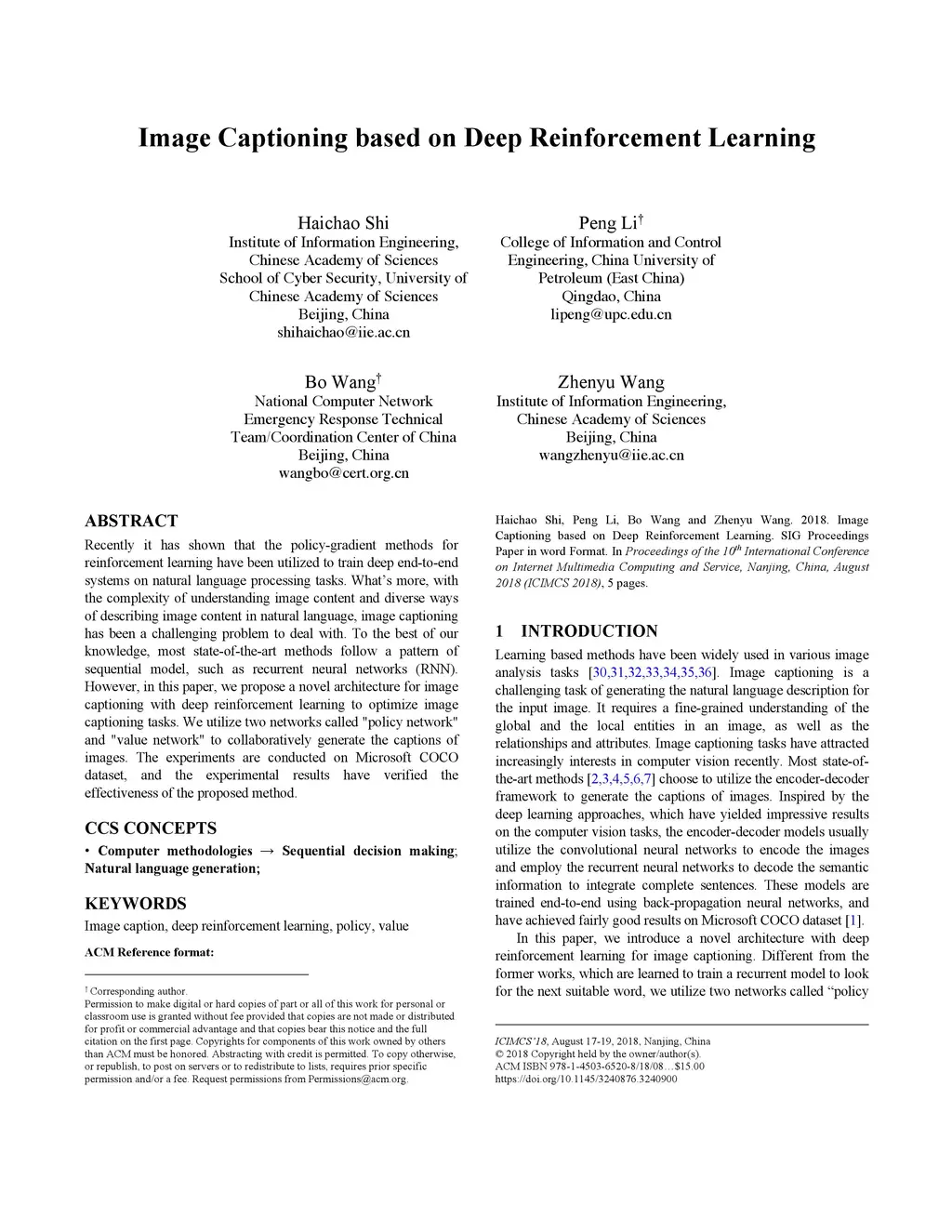 Image Captioning based on Deep Reinforcement Learning