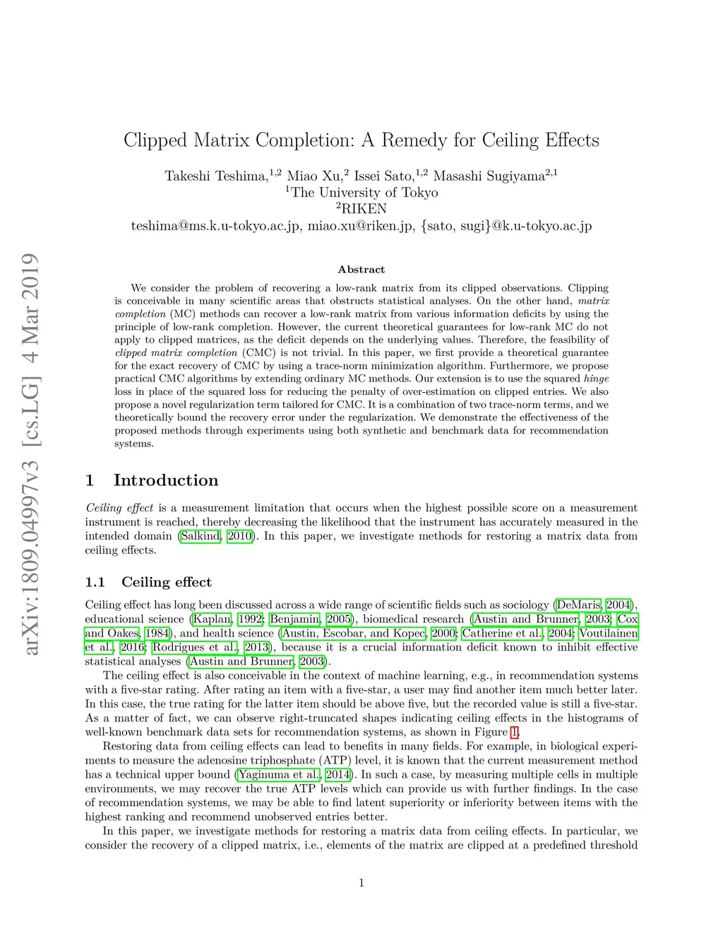 Clipped Matrix Completion: A Remedy for Ceiling Effects