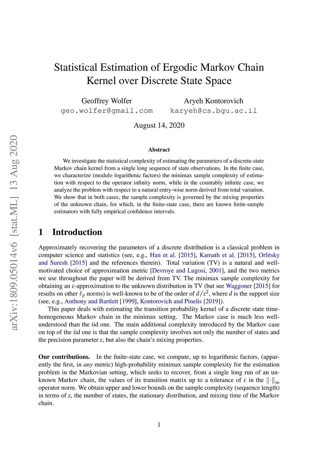 Statistical Estimation of Ergodic Markov Chain Kernel over Discrete