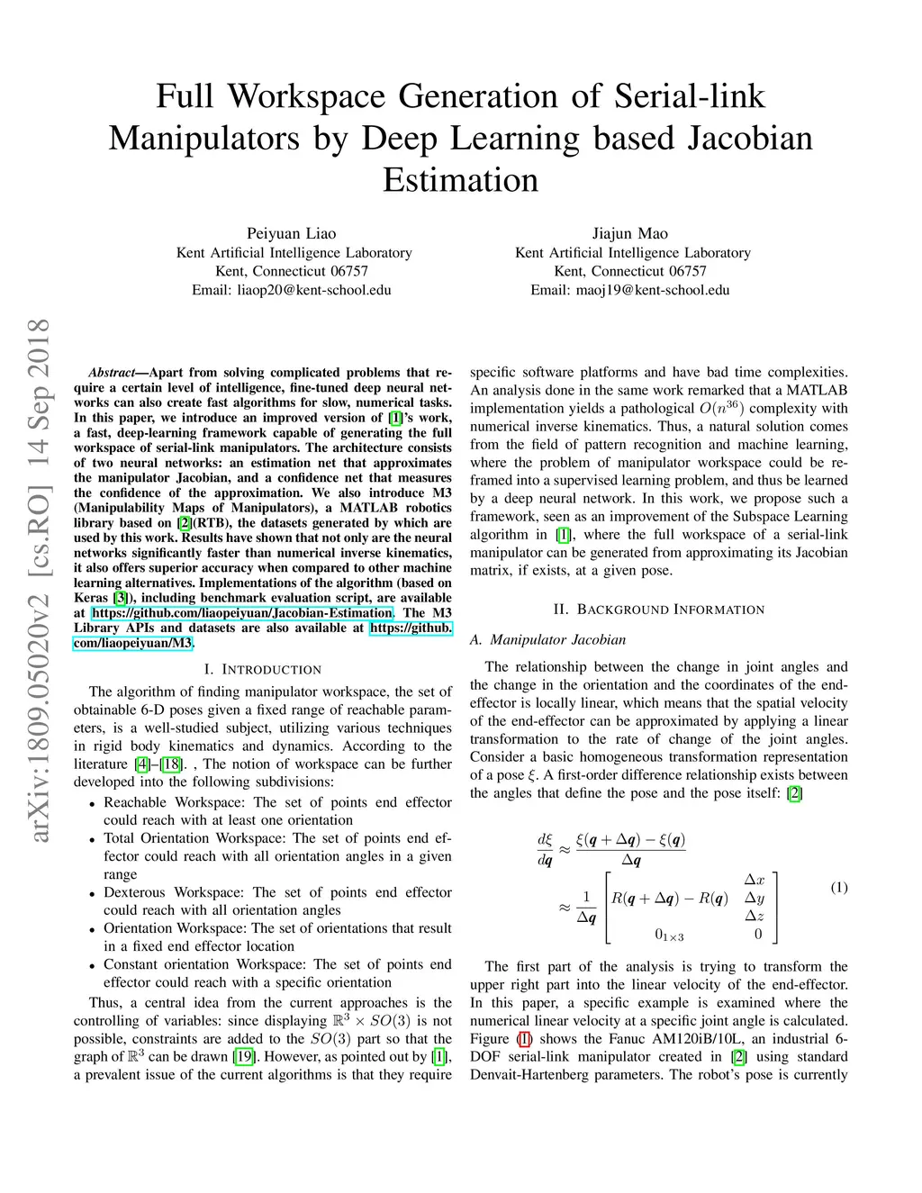 Apart from solving complicated problems that require a certain level of intelligence, fine-tuned deep neural networks can also create fast algorithms for slow, numerical tasks. In this paper, we introduce an improved version of [1]'s work, a fast, deep-learning framework capable of generating the full workspace of serial-link manipulators. The architecture consists of two neural networks: an estimation net that approximates the manipulator Jacobian, and a confidence net that measures the confidence of the approximation. We also introduce M3 (Manipulability Maps of Manipulators), a MATLAB robotics library based on [2](RTB), the datasets generated by which are used by this work. Results have shown that not only are the neural networks significantly faster than numerical inverse kinematics, it also offers superior accuracy when compared to other machine learning alternatives. Implementations of the algorithm (based on Keras[3]), including benchmark evaluation script, are available at https://github.com/liaopeiyuan/Jacobian-Estimation . The M3 Library APIs and datasets are also available at https://github.com/liaopeiyuan/M3 .