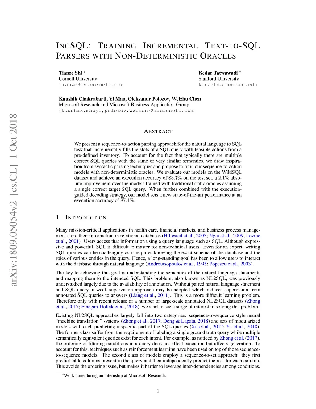 IncSQL: Training Incremental Text-to-SQL Parsers with Non-Deterministic